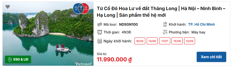 >> Tham khảo tour miền Bắc: