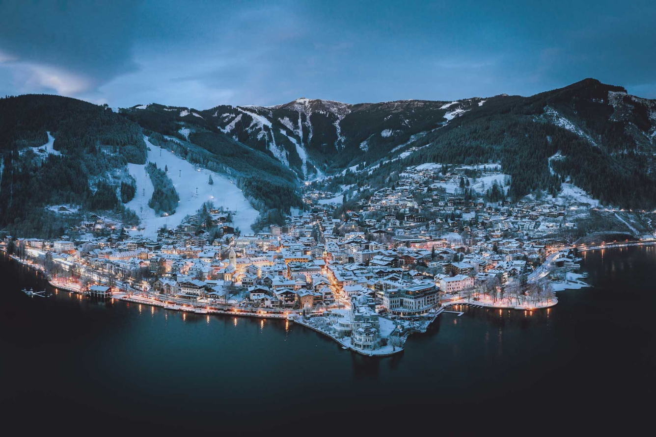 Zell am See là viên ngọc xanh giữa lòng dãy Alps. Vào mùa đông, nơi đây trở thành bức tranh tuyệt mỹ với hồ nước phẳng lặng, tuyết trắng phủ đầy và những ngôi nhà nhỏ ấm áp ánh đèn.