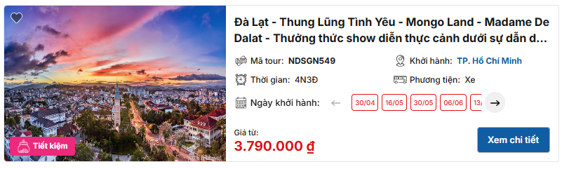 - Vị trí: gần trung tâm Đà Lạt (di chuyển