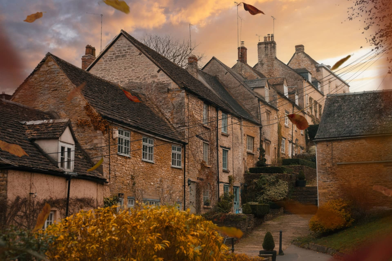 Cotswolds là một vùng quê nổi tiếng với cảnh quan yên bình và những ngôi làng cổ kính làm từ đá ong vàng. Vào mùa thu, toàn bộ khu vực như biến thành một bức tranh tuyệt mỹ với những cánh đồng lúa mì đã gặt xong, những hàng cây rực rỡ sắc lá và bầu không khí se lạnh đầy dễ chịu. Đây chính là một trong những địa điểm du lịch mùa thu ở Anh Quốc thu hút nhiều du khách nhất bởi vẻ đẹp yên ả và thơ mộng.
