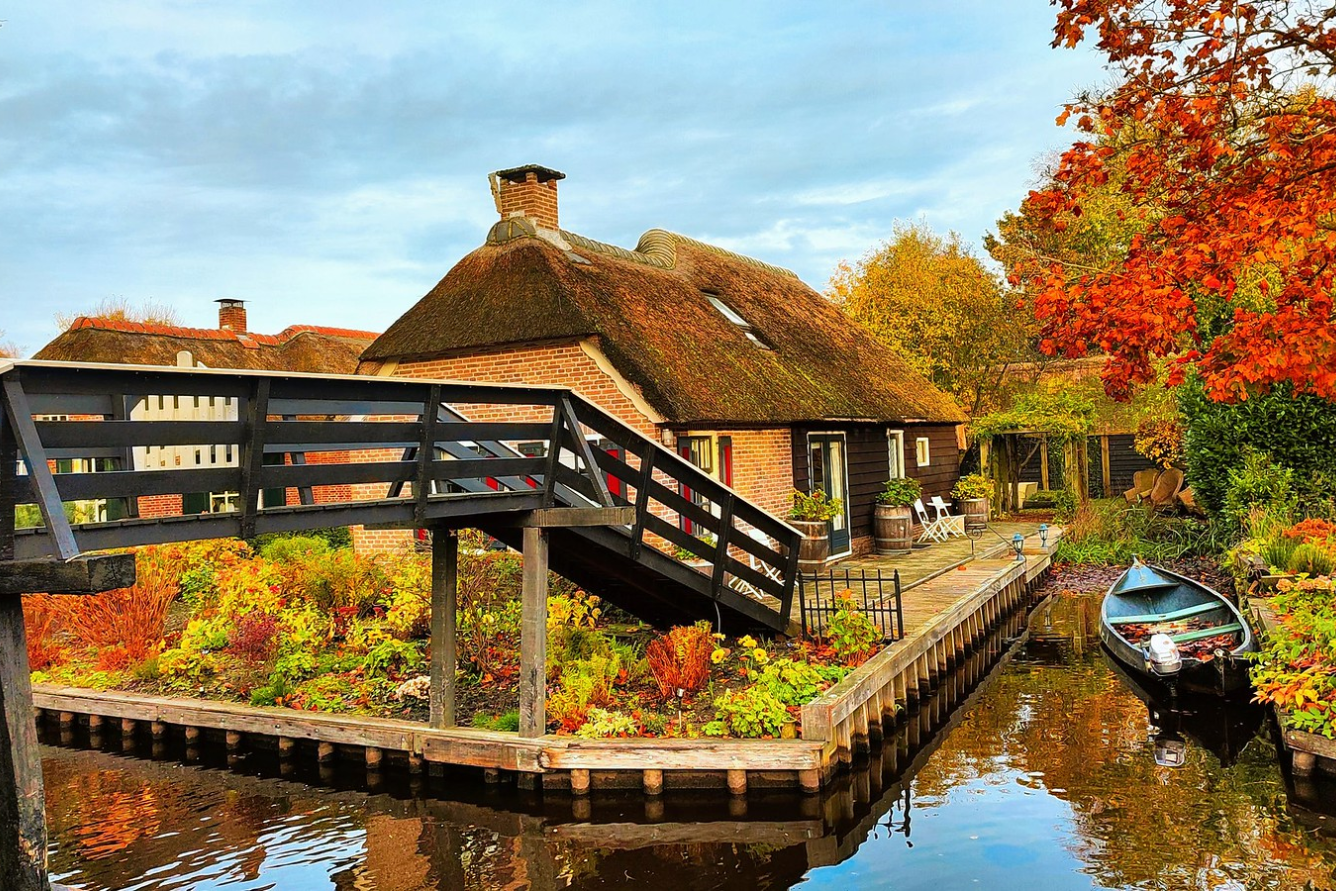 Nếu bạn muốn tìm kiếm một địa điểm du lịch mùa thu ở Hà Lan mang đến cảm giác yên bình và lãng mạn, làng Giethoorn chắc chắn là lựa chọn lý tưởng. Được mệnh danh là “Venice của phương Bắc”, Giethoorn nổi tiếng với hệ thống kênh đào chằng chịt, những ngôi nhà mái tranh cổ kính và cây cầu gỗ nhỏ xinh bắc qua các dòng kênh.