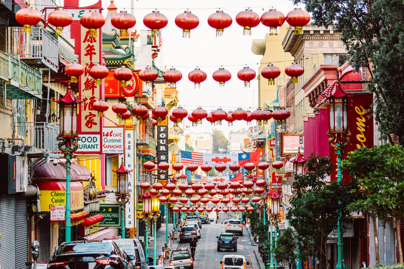 Chinatown là một trong những khu phố người Hoa lớn và lâu đời nhất ngoài lãnh thổ Trung Quốc, đồng thời cũng là địa điểm du lịch mùa thu San Francisco đầy màu sắc và ấn tượng. Khi thu về, khu phố này trở nên rực rỡ với những chiếc đèn lồng đỏ treo khắp các con đường, hòa cùng sắc lá thu vàng cam, tạo nên một không gian vừa nhộn nhịp vừa ấm áp.
