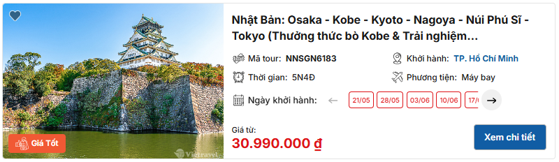 Những địa điểm ngắm hoa anh đào ở Osaka không chỉ mang đến cảnh sắc tuyệt đẹp mà còn tạo ra những khoảnh khắc đáng nhớ trong hành trình khám phá Nhật Bản. Nếu đang lên kế hoạch cho một chuyến du xuân, đừng quên đưa Osaka vào danh sách điểm đến để tận hưởng vẻ đẹp rực rỡ của mùa hoa anh đào. Hãy để Vietravel đồng hành cùng hành trình khám phá những địa điểm ngắm hoa anh đào đẹp nhất tại Osaka và khắp xứ Phù Tang. Với lịch trình được thiết kế chỉn chu, dịch vụ chất lượng và hướng dẫn viên tận tâm, mỗi chuyến đi sẽ trở thành một kỉ niệm đáng nhớ.