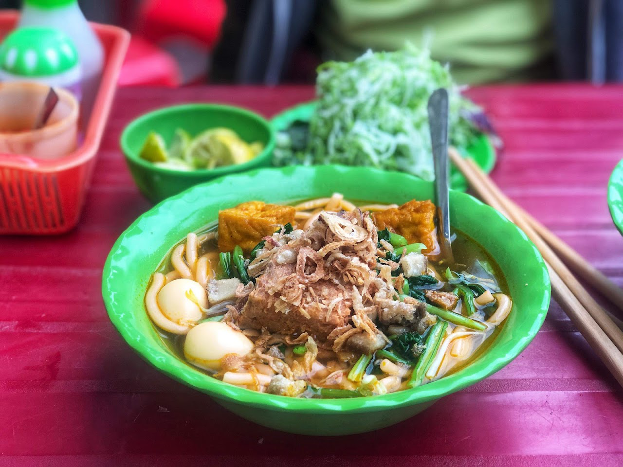Buổi sáng, hãy bắt đầu với một tô bún đỏ Buôn Ma Thuột, món ăn có màu nước dùng bắt mắt từ hạt điều, vị cua đồng béo ngậy, kết hợp với chả viên và rau sống tạo nên một tổ hợp hương vị đặc biệt chỉ có ở phố núi.