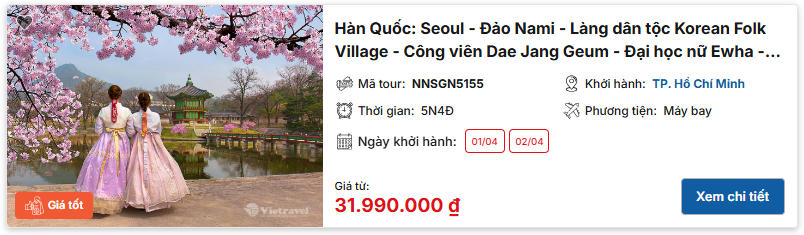 1. Seoul - Đảo Nami - Làng dân tộc Korean Folk Village - Công viên Dae Jang Geum - Đại học Ewha - Đảo Jeju - Đồi Camellia | Ngắm hoa Anh Đào (5N4Đ)