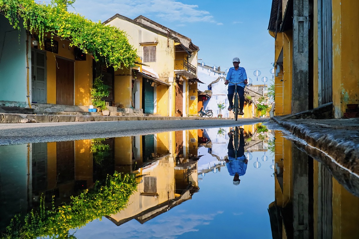 Vào một ngày đầu thu, nếu bạn có dịp ghé thăm phố cổ sau cơn mưa rào, sẽ thấy từng bức tường vàng rêu óng ánh dưới ánh nắng phản chiếu, những giọt nước còn đọng trên tàu lá bàng lấp lánh như pha lê. Lúc ấy, cảnh vật như vừa được gột rửa, trở nên trong trẻo, tinh khôi, khiến du khách không thể rời mắt. Những con hẻm nhỏ, những chiếc lồng đèn giăng ngang lối hay hình ảnh người dân phố Hội thong dong bên gánh hàng rong – tất cả dệt nên một bức tranh bình yên mà chỉ có thể cảm nhận trọn vẹn khi đi du lịch mùa thu miền Trung.