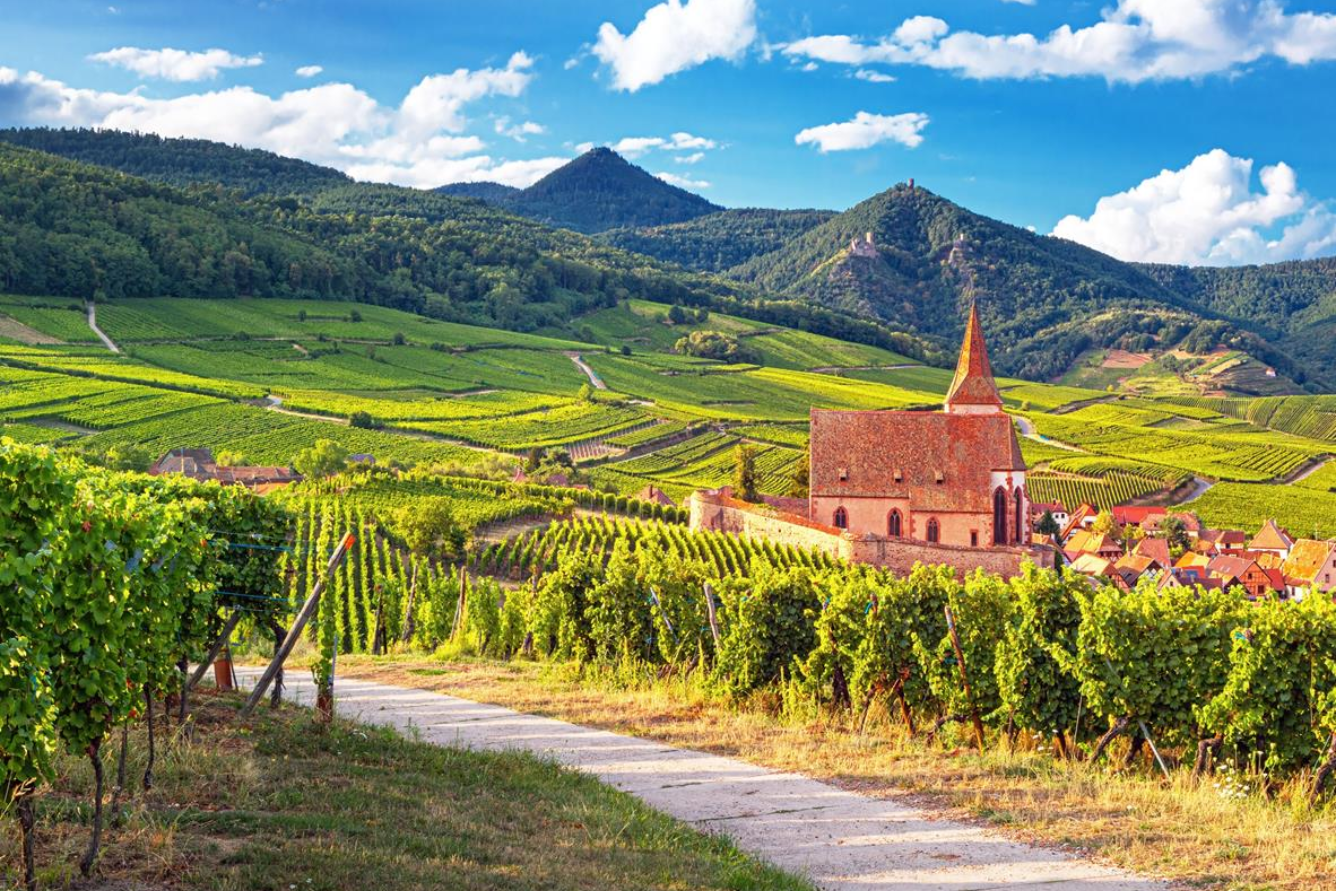 Vùng Alsace là một trong những điểm đến không thể thiếu khi du lịch Pháp vào mùa thu. Nằm gần biên giới Đức, Alsace nổi tiếng với những ngôi làng cổ kính rực rỡ sắc màu và những vườn nho trải dài bất tận. Vào mùa thu, khung cảnh nơi đây lại càng trở nên đẹp như tranh vẽ, với những mái nhà gỗ cổ điển được bao phủ bởi dây leo vàng đỏ và những con đường lát đá cổ kính.