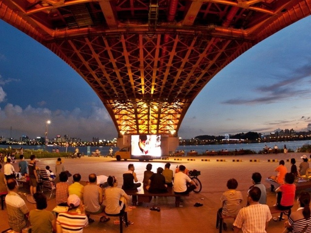 Bạn có từng nghĩ mình sẽ xem một bộ phim Hàn lãng mạn, ăn bắp rang nóng hổi và dựa vào vai ai đó, ngay giữa lòng Seoul về đêm?Mỗi tối cuối tuần trong lễ hội, các công viên ven sông như Yeouido, Ttukseom hay Banpo lại hóa thành rạp chiếu phim “ngàn sao”. Không gian mở, ánh đèn vàng dịu, tiếng nước lách tách hòa cùng âm nhạc từ phim – tạo nên một không khí vừa riêng tư, vừa ngọt ngào.