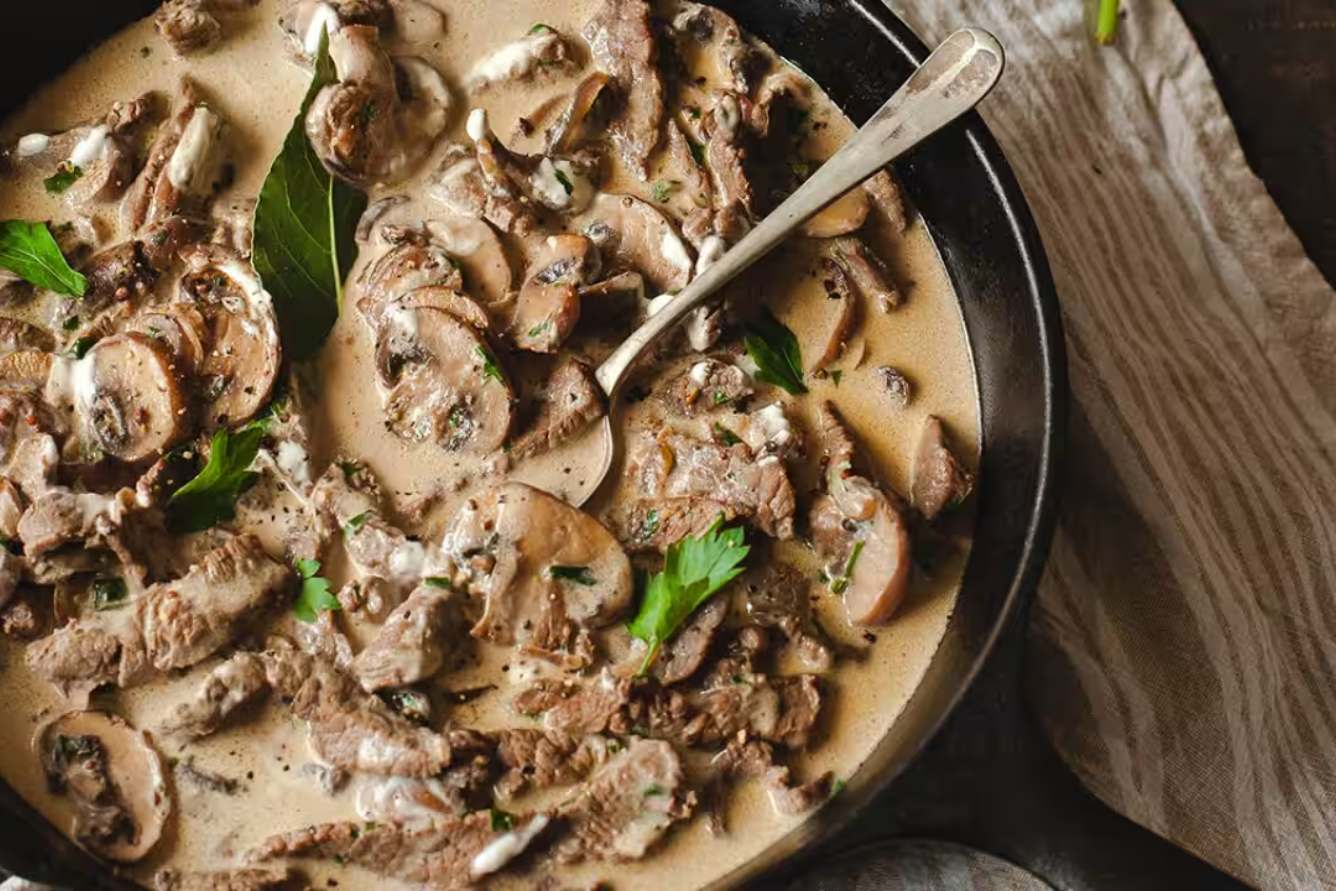 Beef Stroganoff là một trong những món ăn nổi tiếng nhất của ẩm thực Nga, được sáng tạo trong thế kỷ 19 dành cho giới quý tộc. Món thịt bò mềm tan, được xào cùng hành tây, nấm và nước sốt kem chua béo mượt, tạo nên hương vị sang trọng, đậm đà nhưng không ngấy.