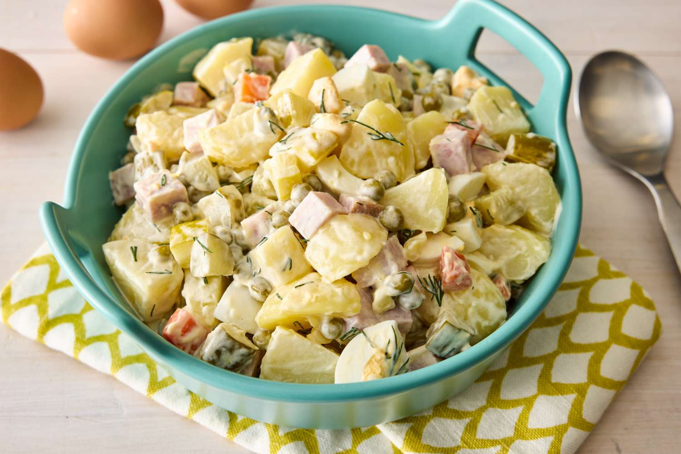 Trong bất kỳ bữa tiệc nào của ẩm thực Nga, đặc biệt là đêm Giao thừa, món salad Olivier là lựa chọn không thể thiếu. Được sáng tạo bởi đầu bếp người Pháp Lucien Olivier vào thế kỷ 19, món salad này kết hợp khoai tây luộc, trứng, cà rốt, đậu Hà Lan, dưa chuột muối và thịt gà, trộn cùng sốt mayonnaise béo ngậy. Khi thưởng thức ẩm thực Nga vào dịp lễ cùng Vietravel, bạn sẽ thấy món salad này xuất hiện trên hầu hết bàn tiệc, như một lời chúc cho khởi đầu mới, hạnh phúc và thịnh vượng.