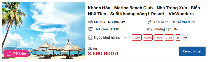 3. “Nha Trang - Vịnh ngọc giữa biển xanh” - Trải nghiệm cung đường tàu hoả Sài Gòn - Nha Trang - Tận hưởng kỳ nghỉ dưỡng đẳng cấp tại Vinpearl resort - Hoà mình vào thế giới sắc màu VinWonders - Vinpearl Harbour