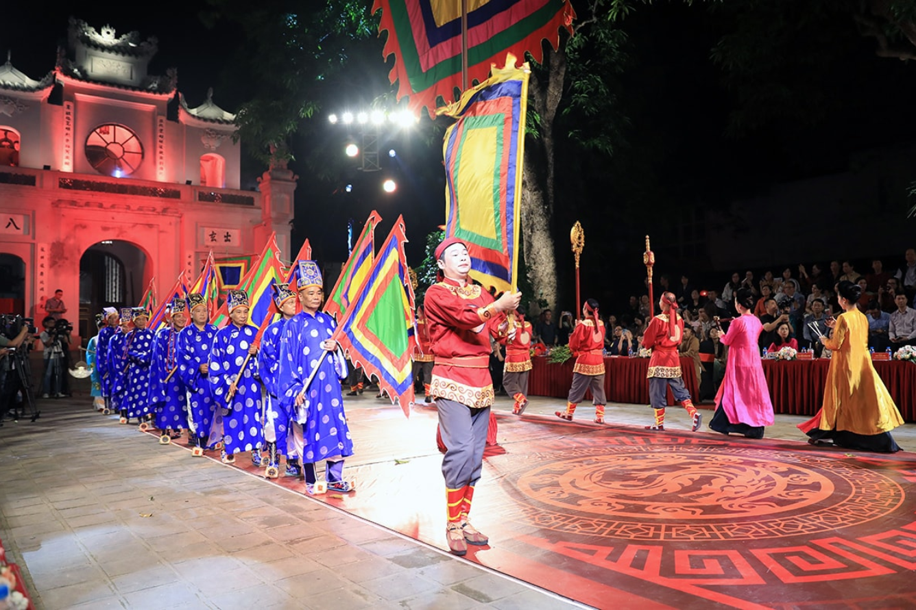 Điểm nhấn của chương trình là màn tái hiện lễ tế Khổng Tử theo nghi thức cổ, cùng các tiết mục nghệ thuật truyền thống như ca Huế, đàn Nguyệt, và múa cổ. Du khách còn được trải nghiệm việc viết chữ Hán trên giấy dó, tìm hiểu về nghệ thuật khắc bia và thưởng thức trà đạo trong không gian cổ kính.