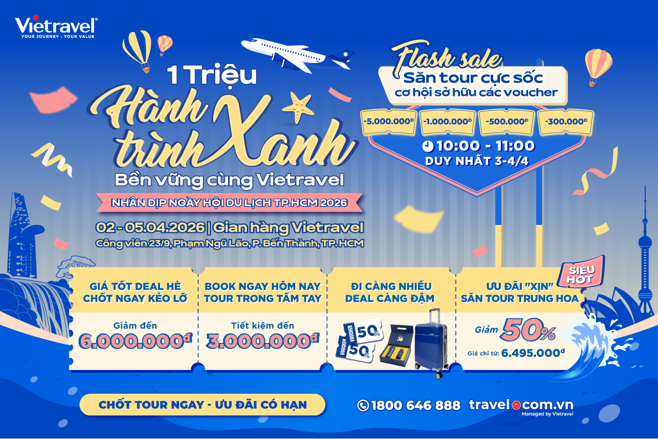 Mời Quý khách hàng đến Gian hàng Vietravel để săn ngay hành trình du lịch ưng ý với nhiều ưu đãi hấp dẫn!