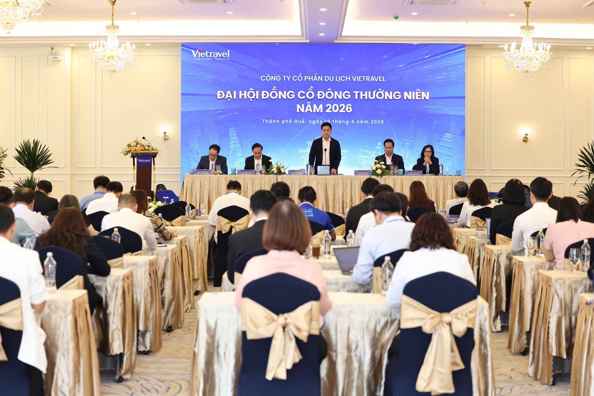 Sáng ngày 19/04/2026, Công ty Cổ phần Du lịch Vietravel đã tổ chức thành công Đại hội Cổ đông thường niên năm 2026 tại Hué Plaza, với sự tham dự của Hội đồng Quản trị, Ban Lãnh đạo, các cổ đông và khách mời.