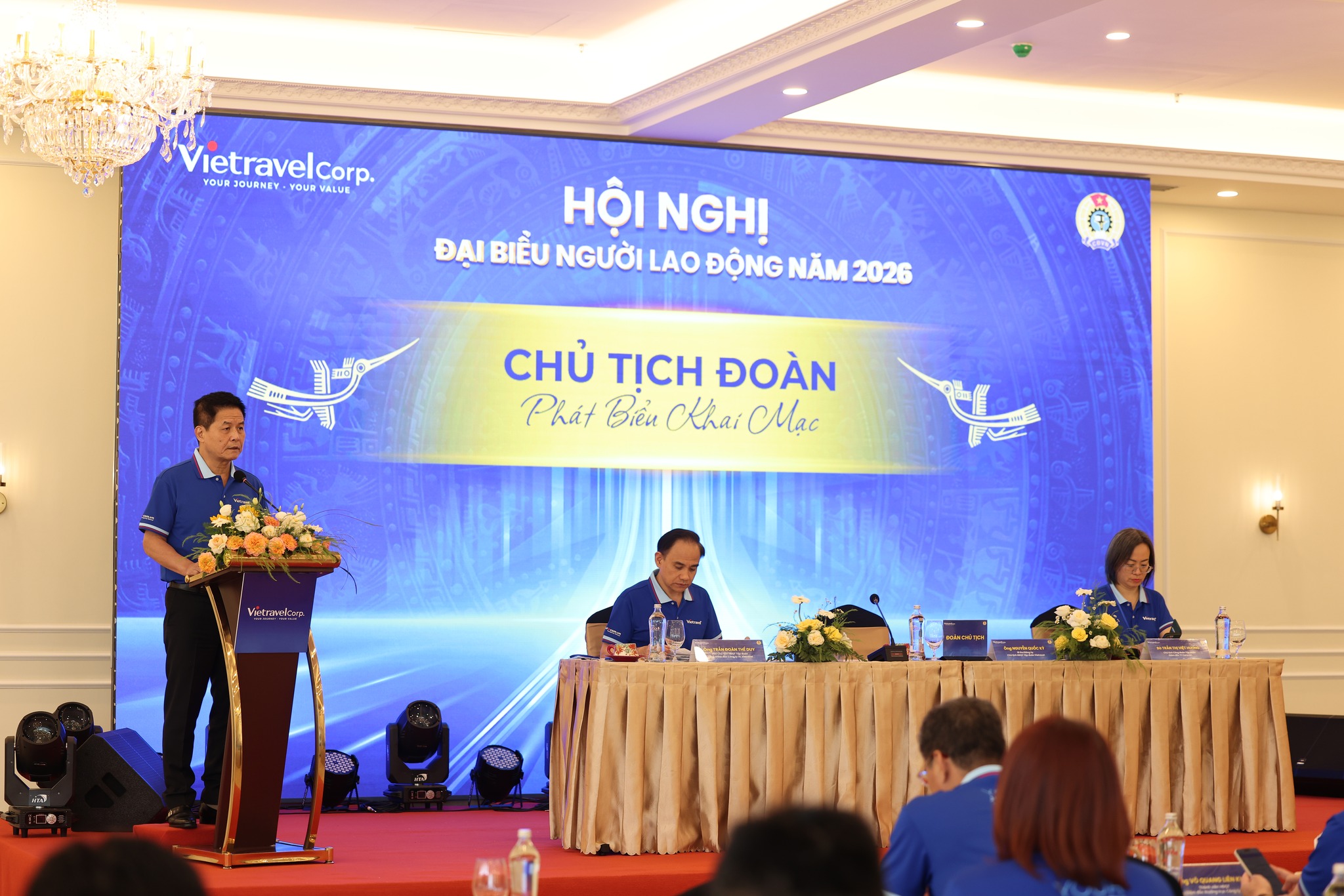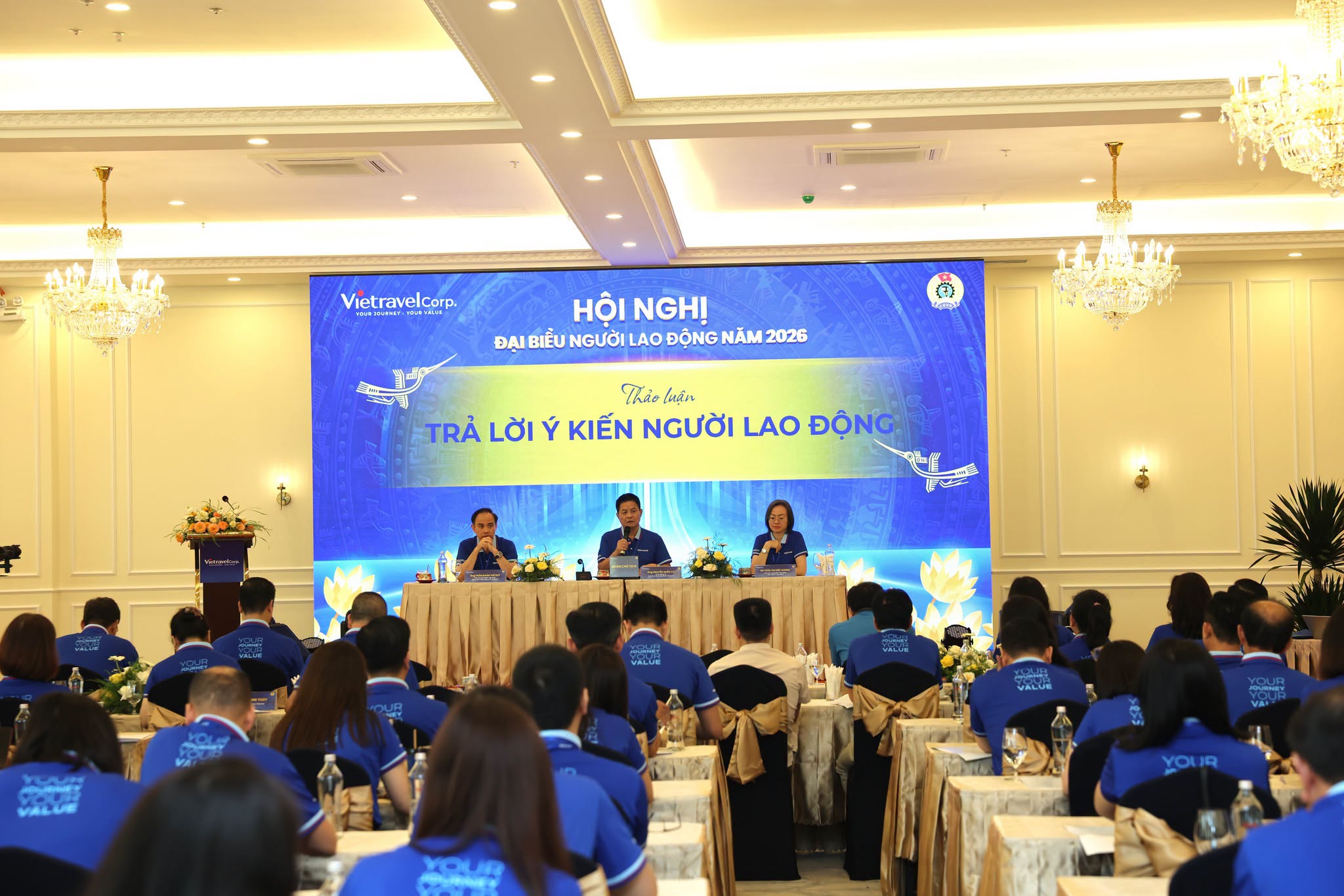 Chiều ngày 18/04/2026, tại Hué Plaza, Công ty Cổ phần Tập đoàn Vietravel đã tổ chức thành công Hội nghị Đại biểu Người lao động năm 2026 với sự tham dự của Ban Lãnh đạo, Ban Chấp hành Công đoàn cùng các đại biểu đại diện cho người lao động trên toàn hệ thống