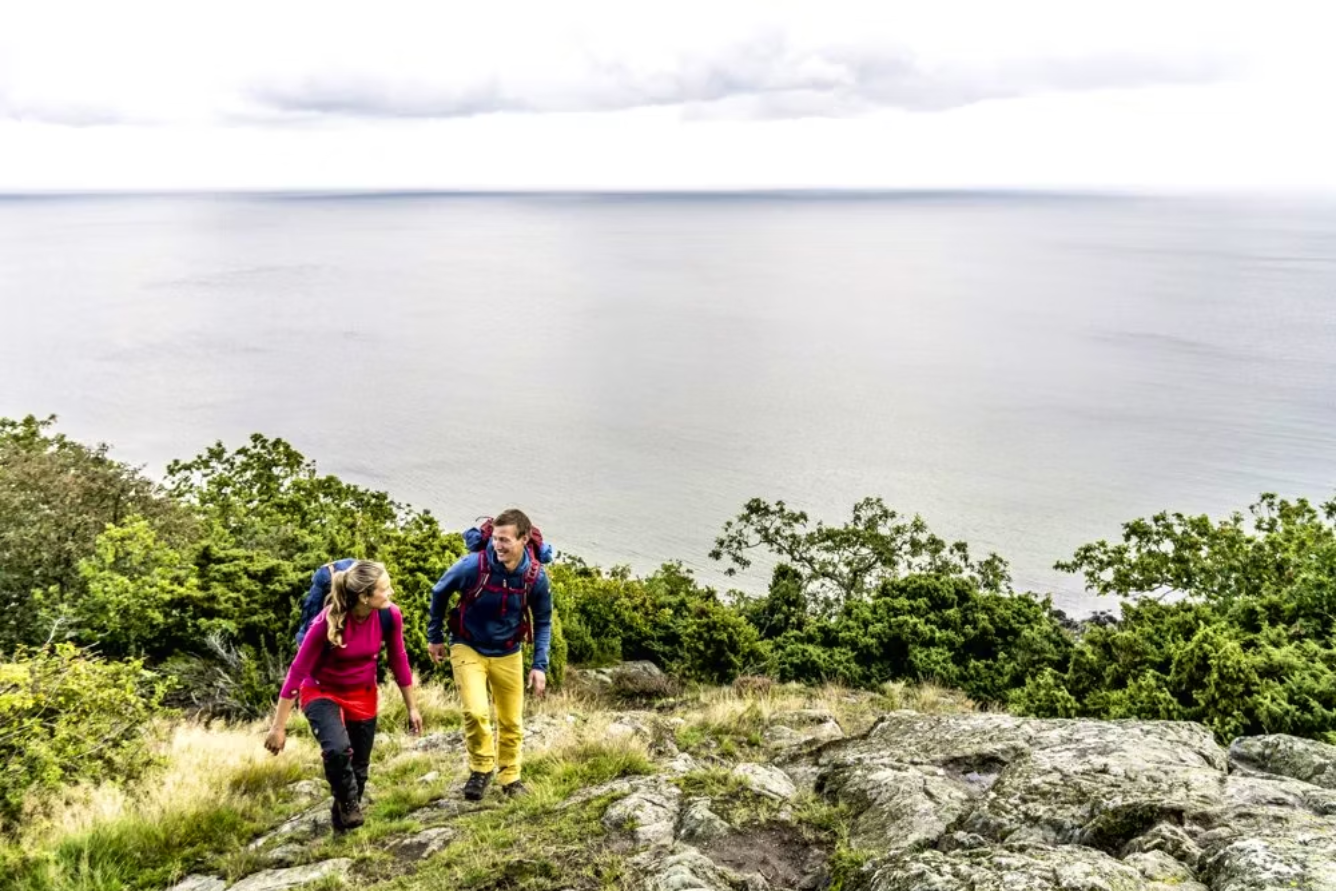 Skåneleden mang trong mình vẻ đẹp đa dạng và phong phú của vùng khí hậu ôn hòa, nơi nắng ấm, gió biển và sắc xanh của thiên nhiên tạo nên một bức tranh sống động suốt bốn mùa. Một trong những đoạn nổi bật nhất là khu vực Kullaberg – nơi những vách đá vươn ra biển Baltic, sóng vỗ rì rào dưới chân và ánh hoàng hôn đỏ rực nhuộm tím cả chân trời.