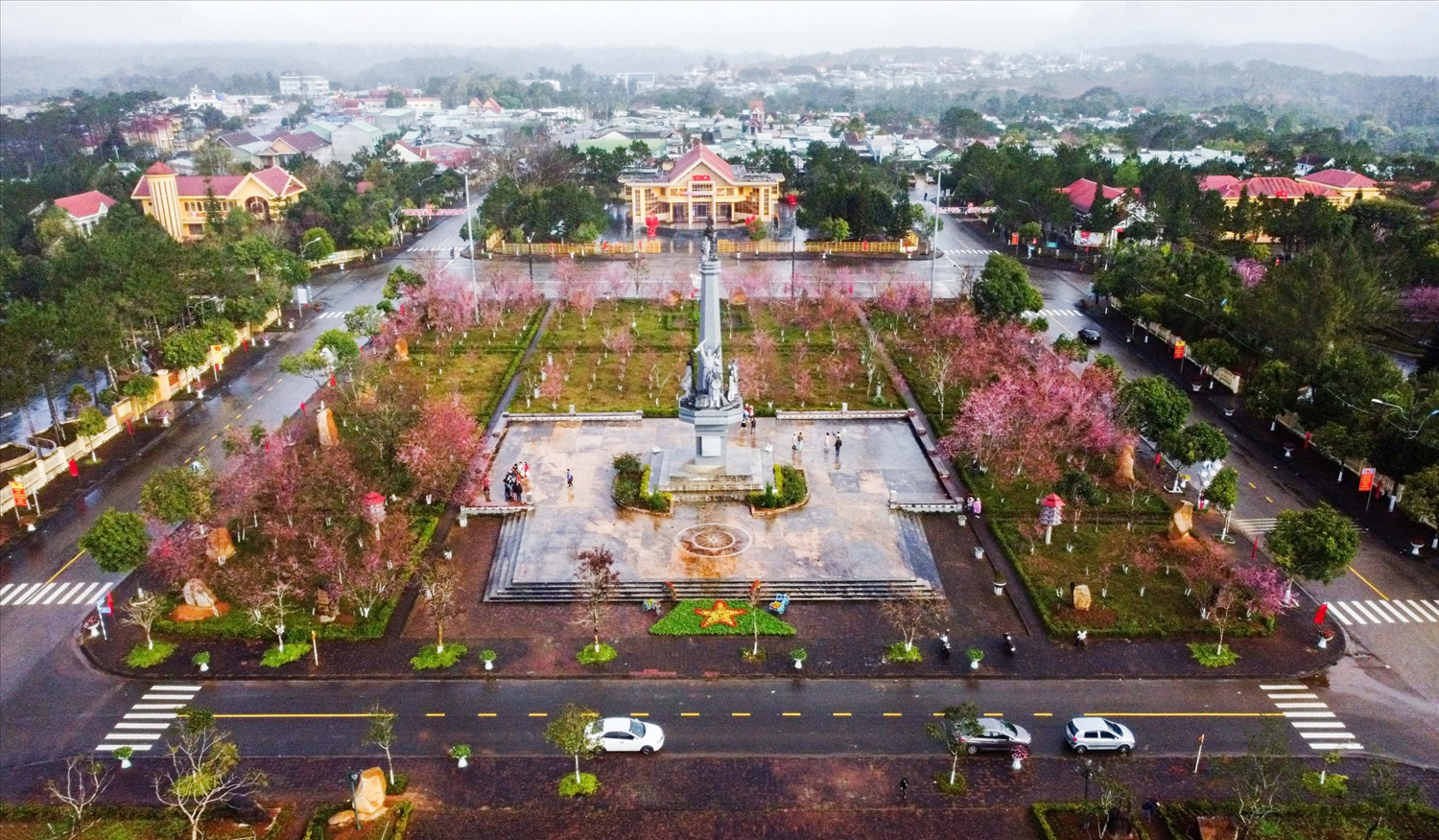 Nằm ngay trung tâm hành chính của thị trấn, quảng trường Măng Đen được xem là một trong những điểm nhấn hấp dẫn của khu du lịch Măng Đen. Với diện tích khoảng 2ha, nơi đây được bao quanh bởi nhiều công trình kiến trúc nổi bật như nhà thờ, nhà văn hóa, trường học và bưu điện, tạo nên không gian vừa hiện đại vừa gần gũi. Tại quảng trường, du khách có thể chiêm ngưỡng đài phun nước, sân khấu ngoài trời và khu vui chơi dành cho trẻ em – điểm đến lý tưởng cho các hoạt động cộng đồng. Đặc biệt, vào mùa hoa mai anh đào (từ tháng 1 đến tháng 2), cả quảng trường khoác lên mình sắc hồng rực rỡ, trở thành một trong những địa điểm du lịch Măng Đen được nhiều du khách yêu thích khi muốn tìm một không gian vừa thơ mộng vừa yên bình.