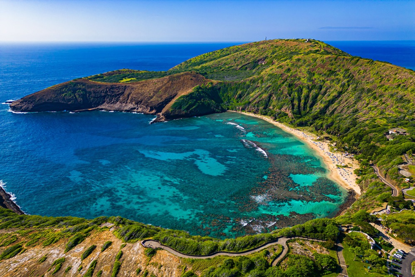 Nếu bạn là người yêu thích thiên nhiên và muốn khám phá thế giới sinh vật biển kỳ thú, Hanauma Bay chắc chắn là một trong những địa điểm du lịch mùa hè Honolulu không thể bỏ qua. Nằm cách trung tâm Honolulu khoảng 30 phút lái xe, vịnh Hanauma là một khu bảo tồn thiên nhiên biển được hình thành từ một miệng núi lửa cổ đã chìm một phần dưới nước.