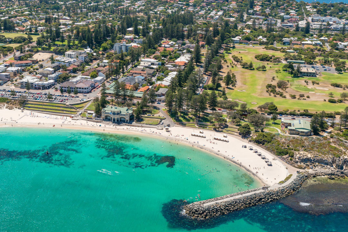 Không thể nói đến các địa điểm du lịch mùa hè Perth mà bỏ qua bãi biển Cottesloe – biểu tượng nghỉ dưỡng mang tính biểu trưng của thành phố. Chỉ cách trung tâm khoảng 15 phút lái xe, Cottesloe là nơi hội tụ những bãi cát trắng mịn, làn nước biển trong xanh và hàng dừa cao vút đón gió.