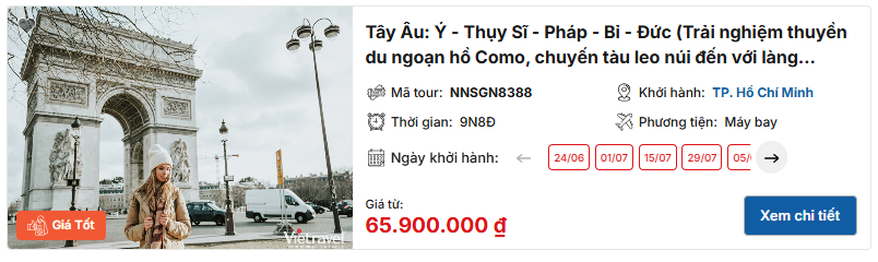 Nếu bạn chưa quen với việc tự sắp xếp lịch trình hoặc muốn tối ưu thời gian khi khám phá Thụy Sĩ, bạn có thể tham khảo các tour du lịch Zurich của Vietravel được thiết kế sẵn. Một hành trình hợp lý sẽ giúp bạn không chỉ đi đủ điểm, mà còn cảm nhận được đúng “chất” của thành phố này theo cách trọn vẹn nhất.