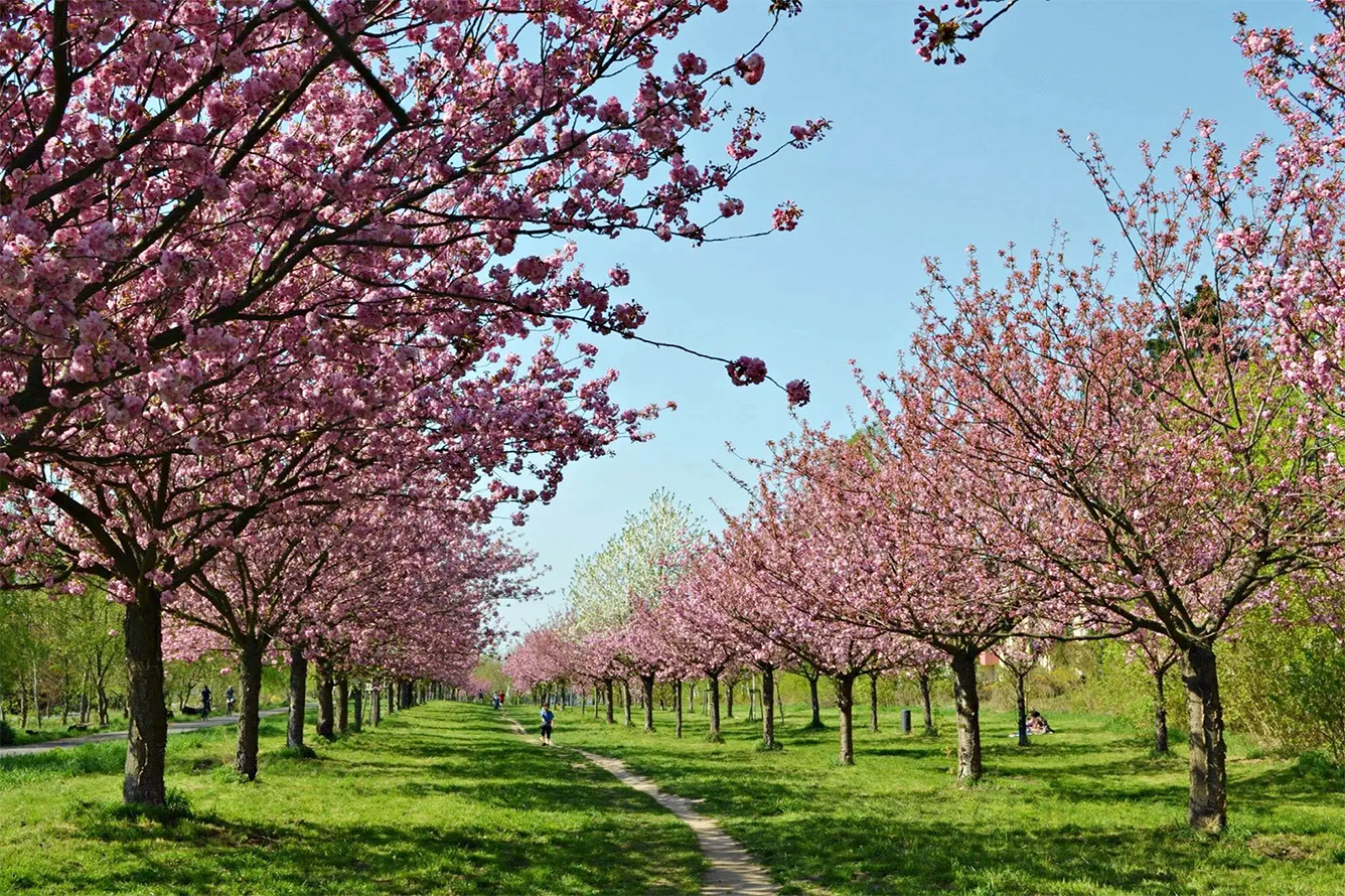 Tiergarten là công viên lớn nhất Berlin, nằm ngay giữa trung tâm thủ đô nước Đức. Đây là một trong những địa điểm ngắm hoa anh đào ở Đức lý tưởng dành cho những ai yêu thích thiên nhiên. Vào tháng 4, khu vực gần đường Straße des 17. Juni và quanh Hồ Neuer See trở thành một biển hoa hồng rực rỡ khi những cây anh đào nở rộ. Đi dạo dưới những hàng cây phủ kín hoa anh đào và tận hưởng không khí trong lành giữa lòng thành phố là một trải nghiệm vô cùng thư giãn. Không chỉ là nơi lý tưởng để ngắm hoa, Tiergarten còn là điểm đến hoàn hảo để thưởng thức một buổi picnic giữa thiên nhiên mùa xuân.