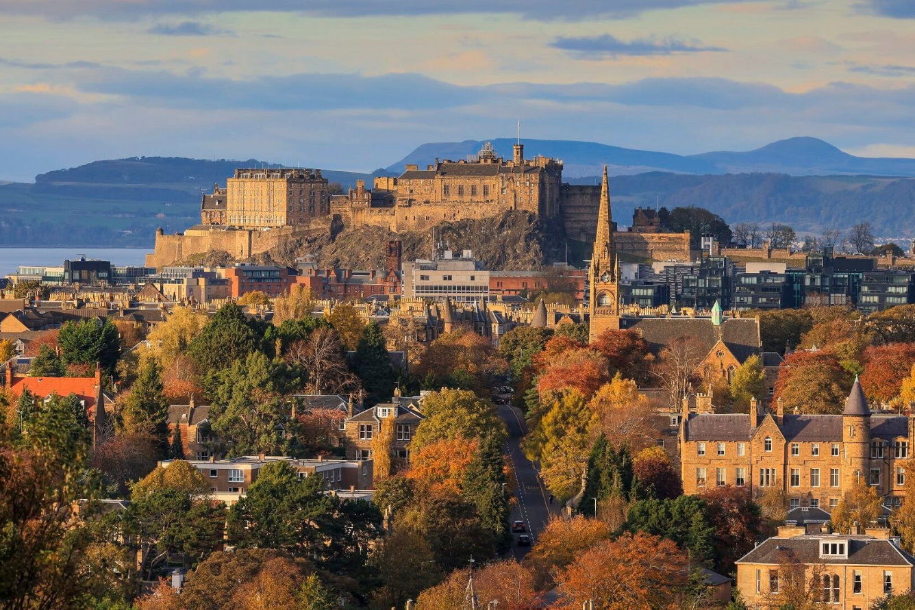 Dù nằm ở Scotland, Edinburgh vẫn thường được nhắc đến như một điểm đến không thể thiếu khi nói về các địa điểm ngắm lá vàng ở Anh. Thành phố cổ kính này nổi tiếng với những lâu đài, con phố lát đá và công viên rộng lớn. Vào mùa thu, sắc vàng của lá phủ kín khắp nơi, tạo nên một bức tranh thiên nhiên hòa quyện với nét đẹp lịch sử.