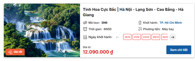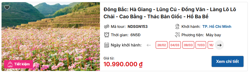 1. Đông Bắc: Hà Giang - Lũng Cú - Đồng Văn - Làng Lô Lô Chải - Cao Bằng - Thác Bản Giốc - Hồ Ba Bể