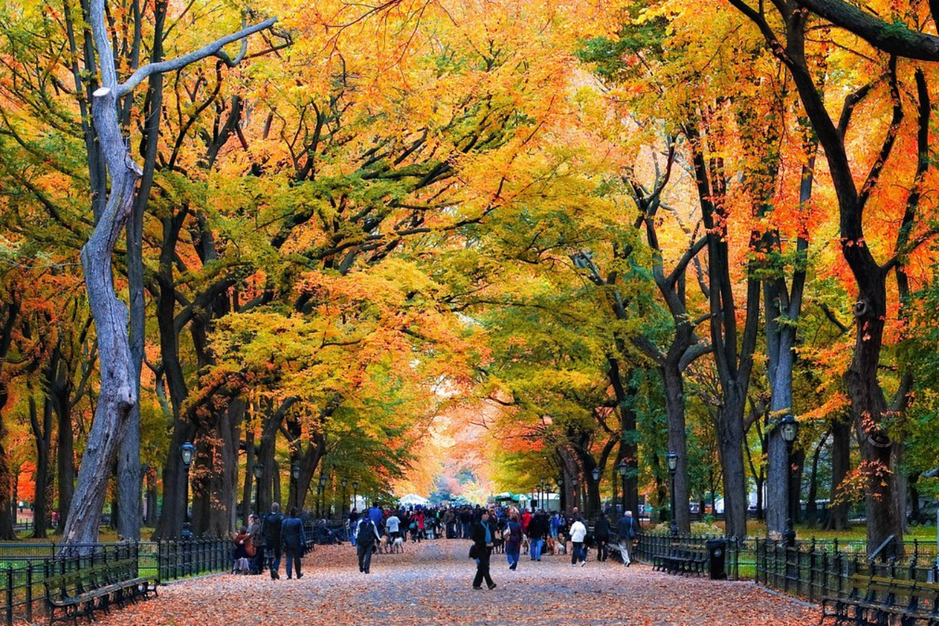 Tour du lịch Mỹ mùa thu không thể thiếu điểm dừng chân tại thành phố New York. Dù nổi tiếng với vẻ đẹp đô thị hiện đại, New York cũng mang đến khung cảnh thơ mộng khi mùa thu đến. Công viên Trung tâm trở thành điểm nhấn với hàng cây thay lá rực rỡ, hồ nước yên bình và những con đường trải đầy lá vàng. Đây là nơi lý tưởng để tản bộ, đạp xe hoặc đơn giản là ngồi trên ghế đá ngắm nhìn dòng người qua lại.