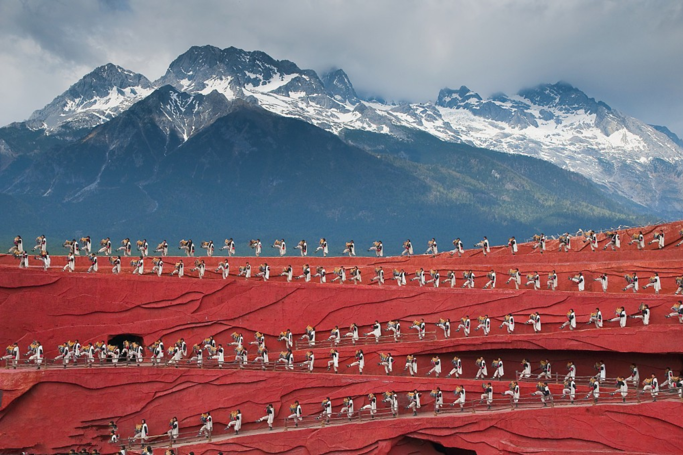 Dưới bàn tay dàn dựng tài hoa của đạo diễn Trương Nghệ Mưu, “Ấn tượng Lệ Giang” trở thành một kiệt tác sân khấu ngoài trời mang đẳng cấp quốc tế. Sân khấu đặc biệt này được đặt ở độ cao hơn 3.100m so với mực nước biển, lấy dãy Ngọc Long Tuyết Sơn hùng vĩ làm phông nền tự nhiên. Tại đây, hơn 500 diễn viên đến từ 10 dân tộc thiểu số sinh sống ở Lệ Giang cùng nhau tái hiện cuộc sống, phong tục và nét văn hóa đặc sắc của người Naxi qua những màn trình diễn đầy cảm xúc.