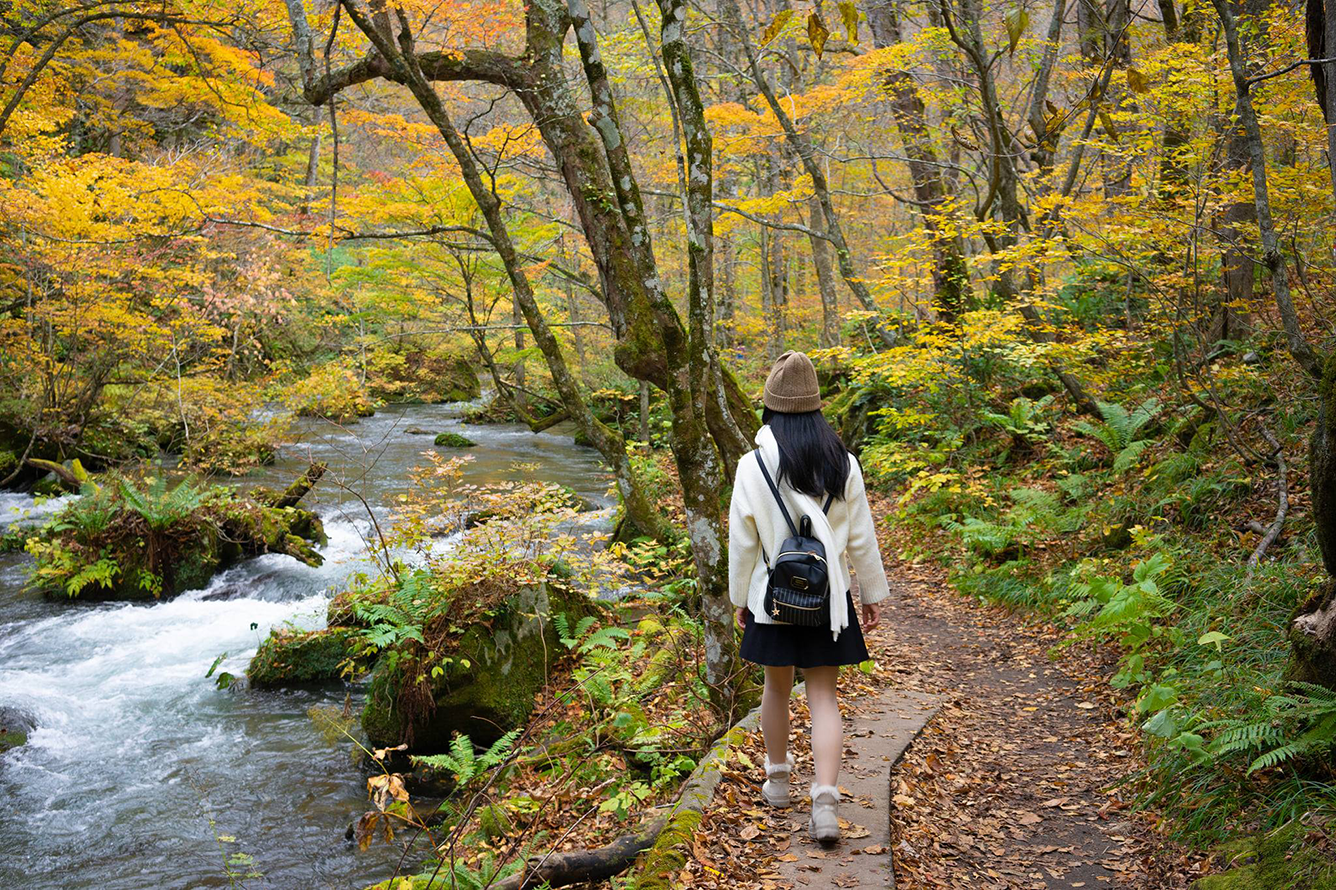 Dọc theo dòng suối Oirase dài khoảng 14km là hàng chục thác nước nhỏ len lỏi giữa rừng lá đỏ. Đường mòn ven suối được thiết kế thuận tiện cho việc đi bộ, giúp bạn vừa tận hưởng âm thanh róc rách vừa cảm nhận được từng đợt gió thu se lạnh lướt qua mặt. Đây là một trong những trải nghiệm ấn tượng nhất mà bạn sẽ có khi du lịch Tōhoku mùa thu bởi không quá đông đúc, hoàn toàn hòa mình vào thiên nhiên.