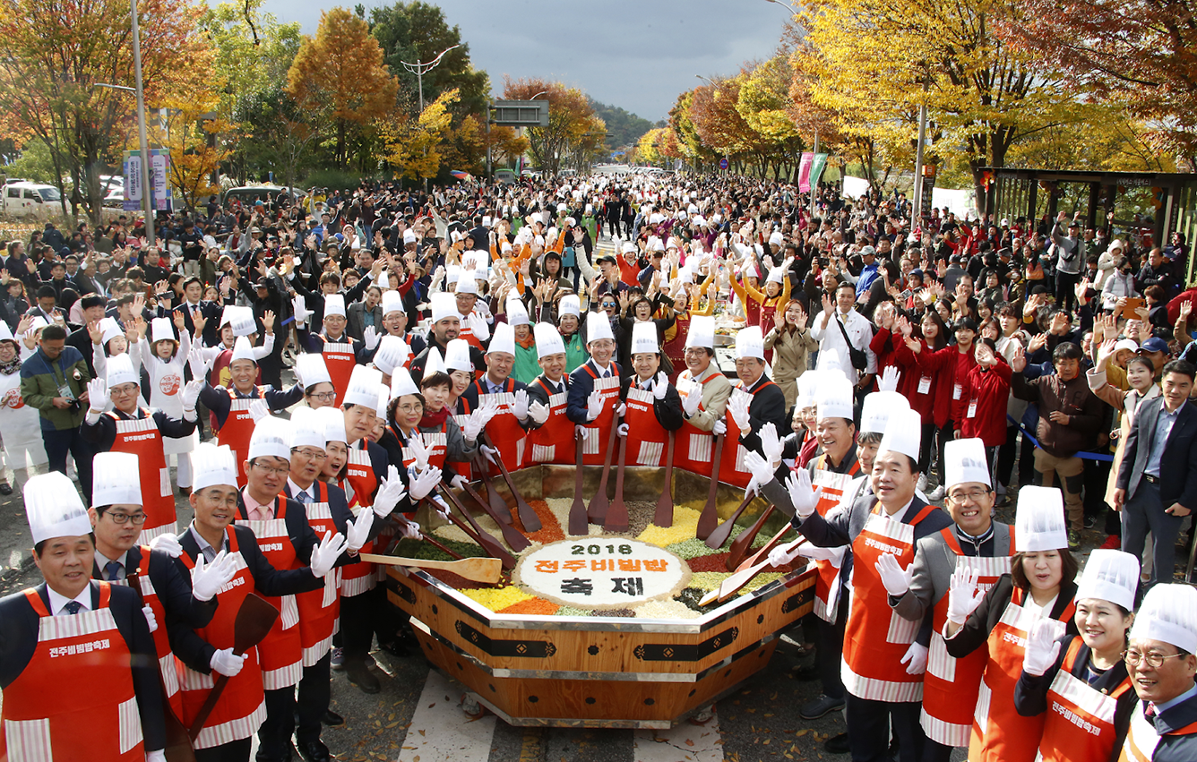 Jeonju là quê hương của bibimbap, một trong những món ăn Hàn Quốc nổi tiếng và được yêu thích trên toàn thế giới. Mỗi năm vào tháng 10, Jeonju Bibimbap Festival thu hút hàng ngàn du khách đổ về để tham gia các hoạt động như thi nấu ăn, trải nghiệm dân gian và biểu diễn truyền thống.