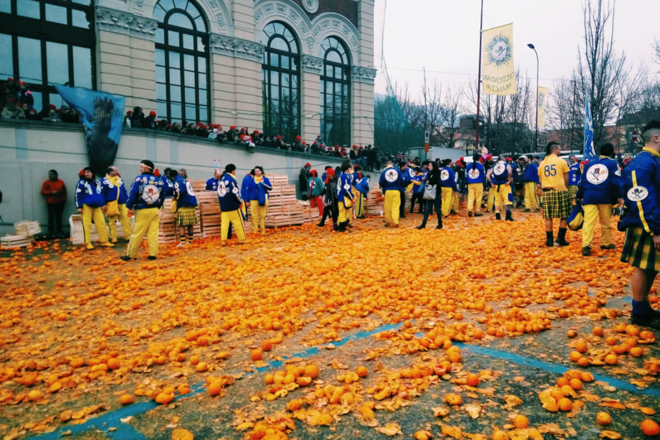 Nếu bạn nghĩ rằng lễ hội chỉ có khiêu vũ và âm nhạc, thì hãy đến Ivrea – nơi diễn ra “Battle of Oranges”, lễ hội ném cam có một không hai trên thế giới. Đây là một trong những lễ hội ở Ý được mong chờ nhất mỗi tháng Hai, khi hàng ngàn người dân chia thành các đội và bắt đầu “trận chiến” cam rực rỡ.