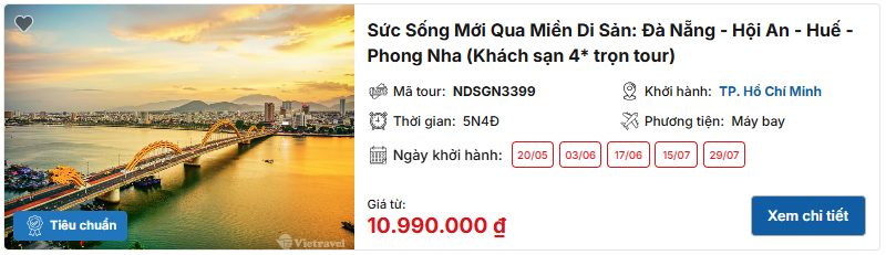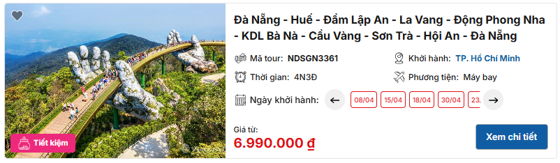 1. Đà Nẵng - Sơn Trà - KDL Bà Nà - Cầu Vàng - Hội An - La Vang - Động Phong Nha & Thiên Đường - Huế