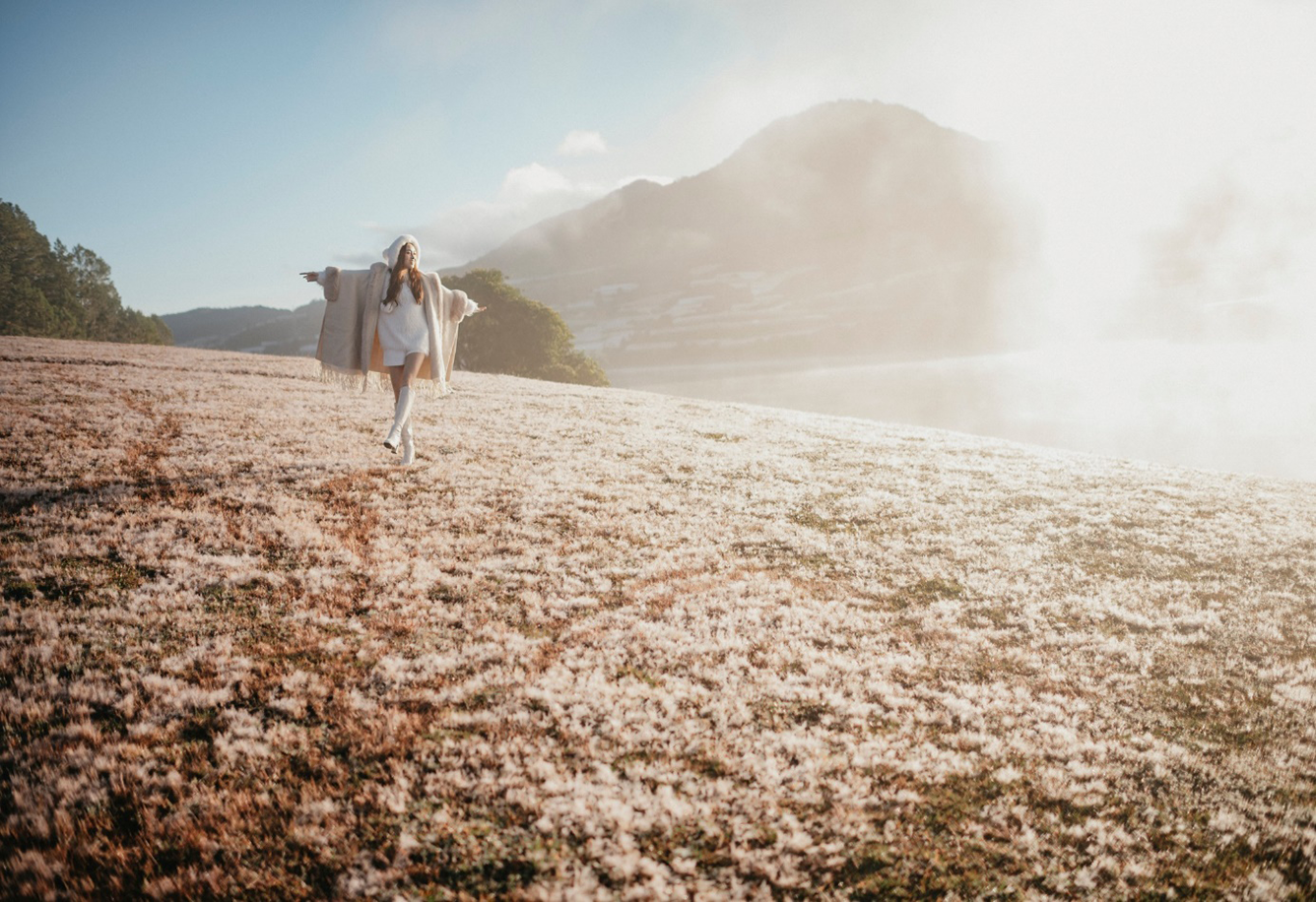 - Chuẩn bị: Áo ấm, găng tay, nước uống. Một chiếc khăn mỏng hoặc váy dài màu trắng, be, hoặc đỏ mận sẽ rất nổi bật giữa đồi.