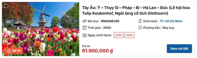>>> Tham khảo tour du lịch châu Âu mùa hoa mới nhất: