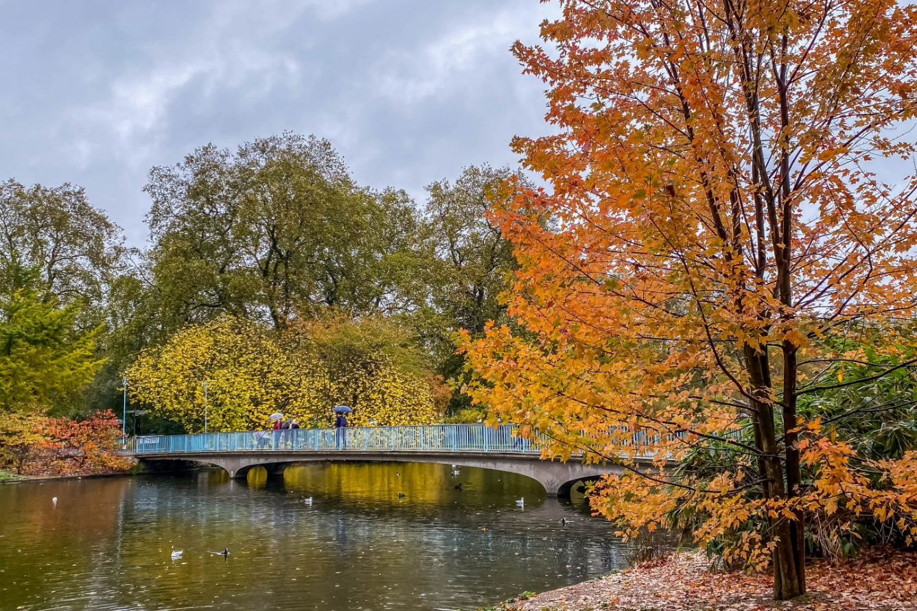 St. James’s Park là công viên lâu đời nhất trong hệ thống Công viên Hoàng gia London, nằm ngay trung tâm thủ đô và được bao quanh bởi những công trình mang tính biểu tượng như Cung điện Buckingham, Dinh Thủ tướng và Nhà Quốc hội. Chính vì vị trí đặc biệt này, ngắm mùa thu ở Công viên Hoàng gia London tại St. James’s Park mang đến một trải nghiệm vừa lãng mạn, vừa gắn liền với bề dày lịch sử.