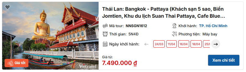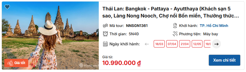 >> Tham khảo tour Thái Lan: