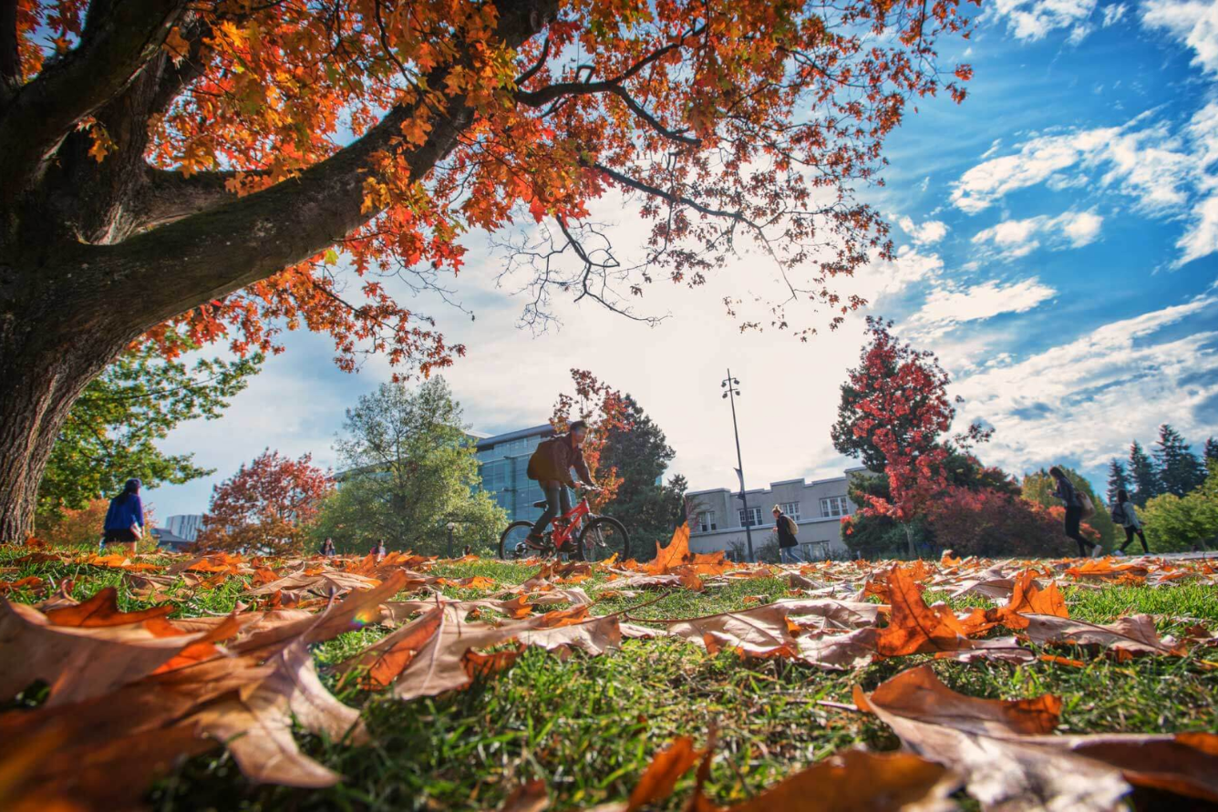 Khuôn viên Đại học British Columbia (UBC) vào mùa thu trở thành một bức tranh tuyệt đẹp với hàng cây lá vàng trải dài trên các con đường và tòa nhà mang kiến trúc cổ kính. Đây là một trong những nơi ngắm lá thu nổi tiếng ở Vancouver, thu hút không chỉ sinh viên mà cả du khách.