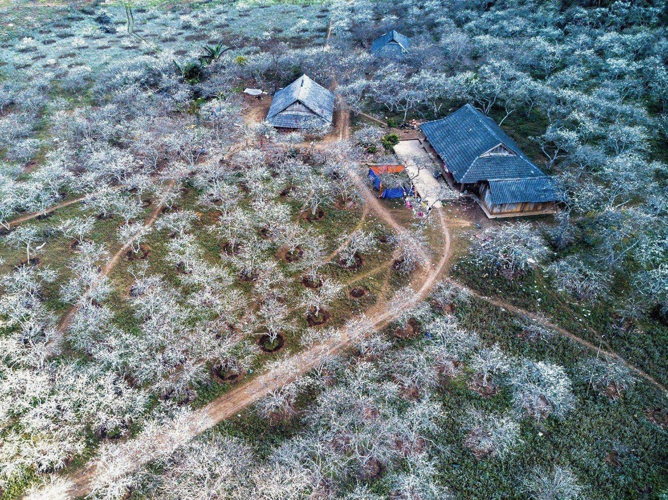 Khoảng cuối tháng 1 đến giữa tháng 2, thung lũng hoa mận Nà Ka bước vào mùa đẹp nhất khi từng tán hoa bung nở trắng muốt, phủ kín cả không gian, tạo nên một khung cảnh tựa chốn thần tiên. Từ trên cao nhìn xuống, thung lũng hiện lên như một bức tranh thủy mặc, nơi những hàng cây mận trải dài bất tận, điểm xuyết sắc trắng tinh khôi dưới nền trời xanh biếc.