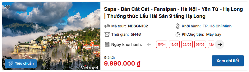 Một chuyến đi tour Tây Bắc 5N4Đ từ Tp HCM không chỉ là hành trình khám phá cảnh sắc núi rừng hùng vĩ mà còn là cơ hội để bạn tìm lại sự an yên giữa thiên nhiên. Từ Mộc Châu, Sapa đến Điện Biên – mỗi điểm dừng đều để lại dấu ấn khó quên trong lòng du khách. Đừng chần chừ nữa, hãy đặt ngay tour du lịch Tây Bắc cùng Vietravel để bắt đầu hành trình chạm đến trái tim vùng cao, nơi những trải nghiệm văn hóa và cảnh đẹp kỳ vĩ đang chờ đón bạn!