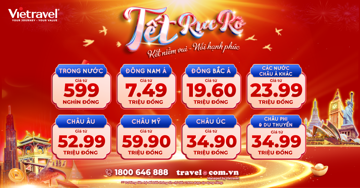 Tour Tết Vietravel 2026 – Giá Ưu Đãi Chỉ Từ 799.000đ | Du Xuân - Lễ Hội - Ngắm Hoa - Hành Hương