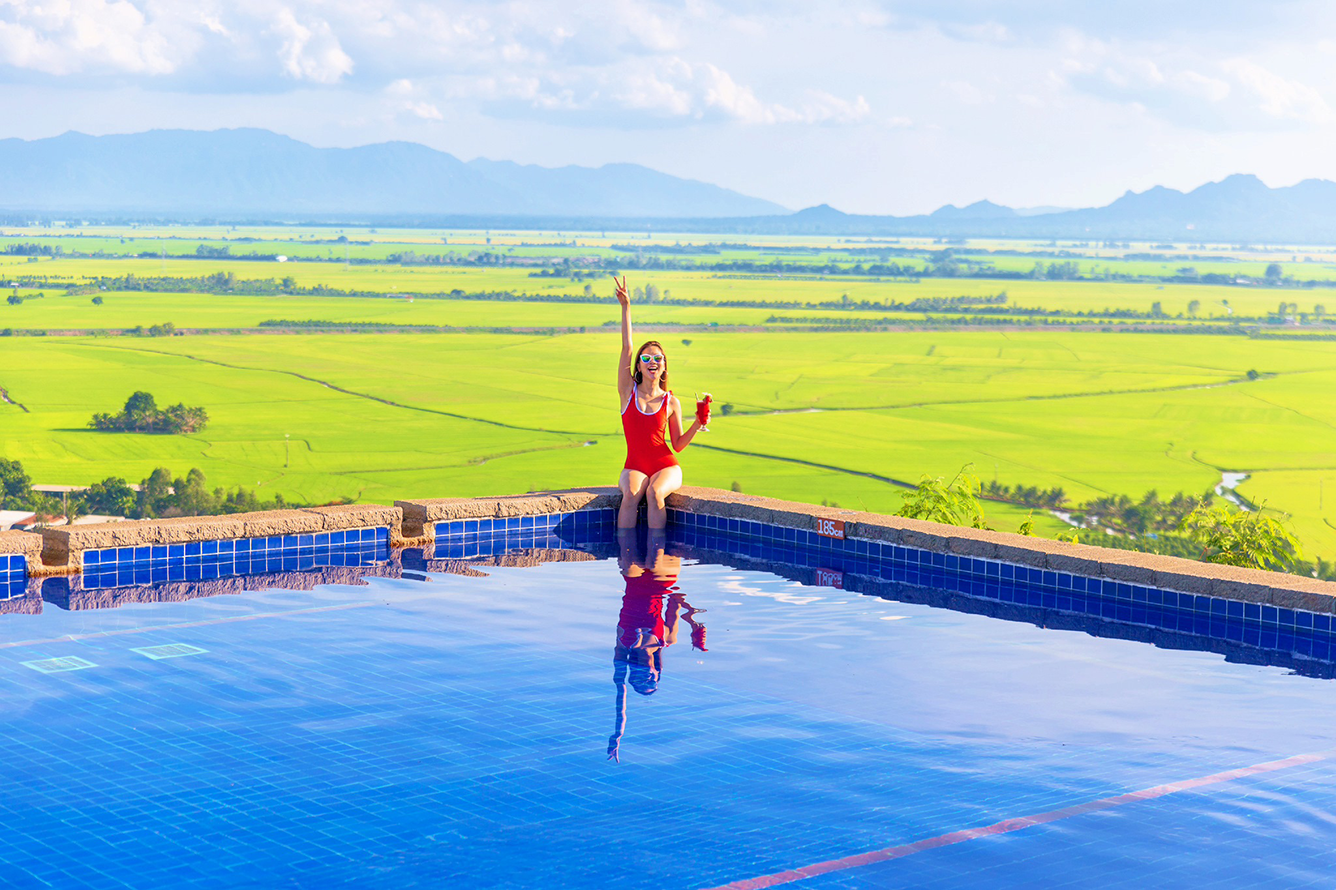 - Nghỉ ngơi, dạo quanh khuôn viên resort, tận hưởng hồ bơi vô cực view đồng lúa.