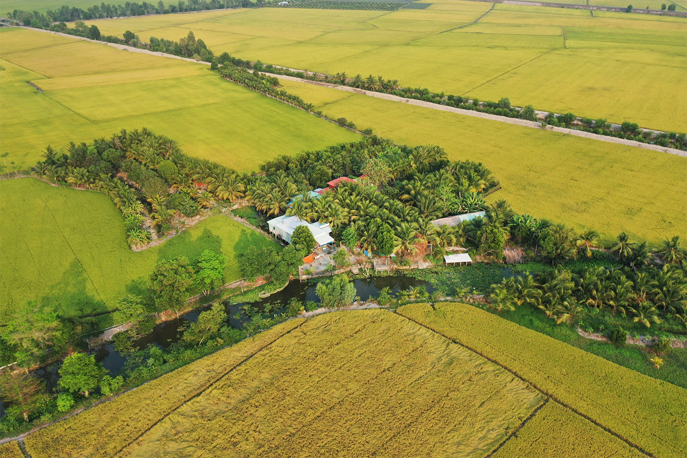 - Buổi chiều: ngắm hoàng hôn buông xuống trên cánh đồng vàng óng, check-in tại resort view lúa chín An Giang.