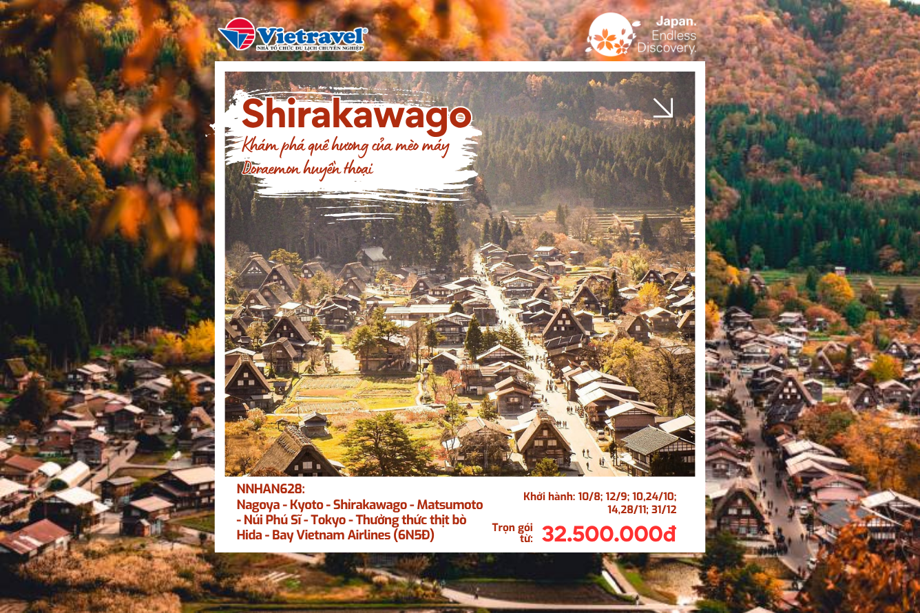 ✦ NNHAN628: Nagoya - Kyoto - SHIRAKAWAGO - Matsumoto - Núi Phú Sĩ - Tokyo - Thưởng thức thịt bò Hida - Bay Vietnam Airlines (6N5Đ)